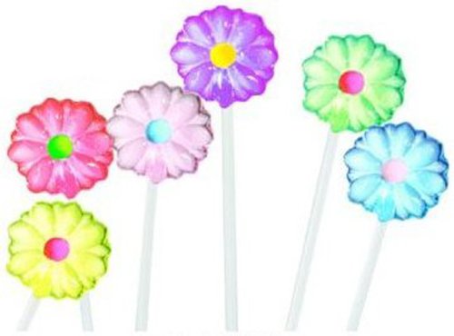 These groovy, fun and delicious flower-shaped lollipops on foot-long sticks are great for party favors and gift add-on! Technical Details